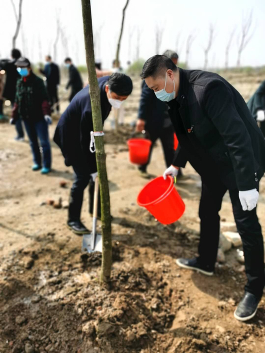 春風十里添新綠,植樹造林正當時。4月3日,我公司積極響應上級龍川控股集團義務植樹造林的活動號召,近10名黨員和青年團員代表志愿報名,積極參加了集團公司、水務公司與南京銀行江都支行在芒稻河東岸江灘濕地開展的銀企“共聯共建共成長”義務植樹活動;顒又,大家挖坑種樹、鏟土培實、提桶澆水,密切協調、相互配合,為綠化美化環境貢獻自己的一份力量。