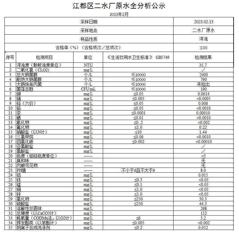 水質(zhì)公示