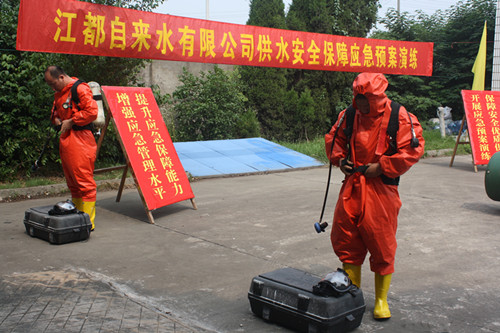 為進(jìn)一步提高安全防范水平,保障夏季高峰供水,6月24日,區(qū)自來水公司根據(jù)安全生產(chǎn)月活動安排,在第二水廠舉行了液氯泄漏及突發(fā)性水源微污染事件應(yīng)急預(yù)案演練,公司制水生產(chǎn)、機(jī)電維修、水質(zhì)檢測等工種人員參加了演練,區(qū)域供水增壓泵站工作人員進(jìn)行了全過程學(xué)習(xí)。區(qū)城建局相關(guān)部門負(fù)責(zé)人進(jìn)行了現(xiàn)場指導(dǎo),區(qū)污水處理廠和亨達(dá)水務(wù)等兄弟單位組織人員現(xiàn)場觀摩。