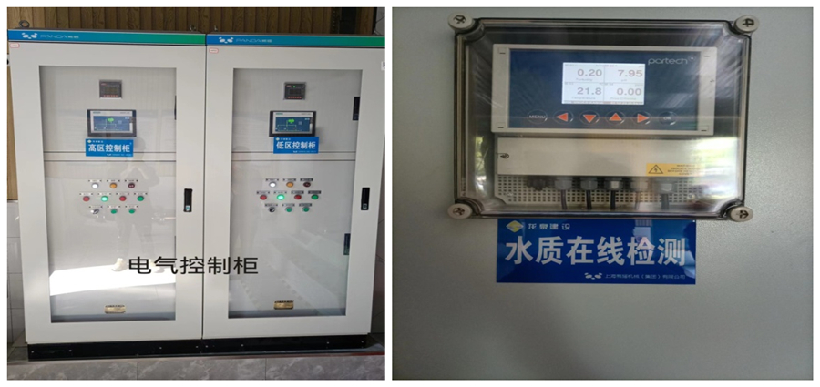 二次供水智慧化標(biāo)準(zhǔn)泵房是高層住宅居民小區(qū)中的重要配套設(shè)施,我公司高度重視,并首先在梧桐公園小區(qū)進行試點并已建成使用,在此建設(shè)和推廣過程中,均要求做到:每個泵房的控制柜分別控制與其相對應(yīng)的設(shè)備;配有渾濁度、余氯和PH值在線檢測設(shè)備;24小時檢測出水渾濁度、余氯和PH值三個指標(biāo)確保每戶市民用水安全;此外,每個控制柜配有觸控屏幕,詳細(xì)記錄實時進水壓力、出水壓力、變頻數(shù)值、機泵運行等參數(shù)指標(biāo)。
