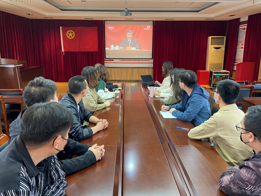 大會直播結束后,在場的青年團員面向鮮艷的團旗,高舉右手,緊握右拳,重溫入團誓詞,再次發出了“青春心向黨·建功新時代”的青春誓言:“我志愿加入中國共產主義青年團,堅決擁護中國共產黨的領導……”慷慨激昂的錚錚誓言,震撼激勵著現場的每一名團員,大家紛紛表示要進一步學習領會習近平總書記重要講話精神,牢記黨的教誨,堅定理想信念,攻堅克難挑大梁、積極主動勇擔當,在青春的賽道上奮力跑出當代青年的最好成績。