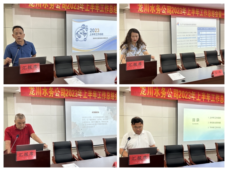 會(huì)議分別聽取了計(jì)劃財(cái)務(wù)部、運(yùn)營技術(shù)部、客戶服務(wù)部、自來水公司、惠民區(qū)域供水公司、龍泉建設(shè)工程公司、龍川污水處理公司等七個(gè)部門單位2023年上半年工作總結(jié)報(bào)告。上述各部門、子公司負(fù)責(zé)人分別圍繞上半年生產(chǎn)經(jīng)營指標(biāo)、重點(diǎn)工作完成情況、存在的主要問題、解決對(duì)策及下半年工作計(jì)劃作了匯報(bào)交流。