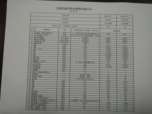 水質(zhì)公示